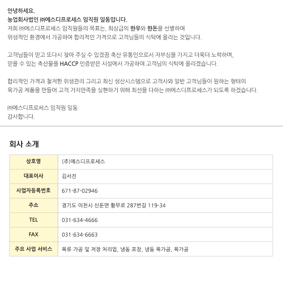 주소 : 경기 이천시 신둔면 황무로287번길 119-34 ㈜에스디프로세스